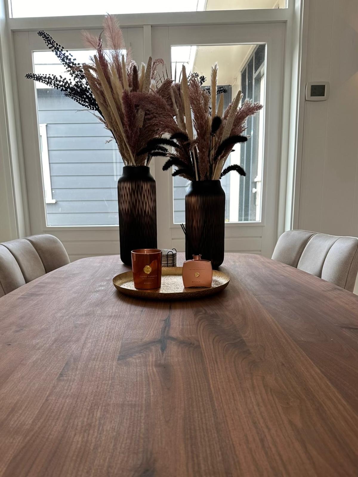 “We hebben een prachtige tafel gekocht bij Maatwerk Tafels. We zijn goed geadviseerd over de vorm, houtsoort en lak. De levering was snel en professioneel. Hij staat nu ruim een maand bij ons en is naast prachtig ook erg functioneel. Door de Deens ovale vorm en de poot in het midden kunnen er zelfs twee extra mensen aan zitten. Perfect voor de feestdagen!”